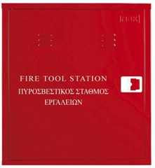 Πλήρης Πυροσβεστικός Σταθμός , εξοπλισμένος με: Αξίνα, Λοστό, Τσεκούρι, Σκεπάρνι, Φτυάρι, Πυρίμαχη Κουβέρτα 0,90x0,90m ,Δύο Φακούς, μια αναπνευστική συσκευη διαφυγής 15λεπτών,δύο κράνη και δύο ατομικές προσωπίδες ημίσεως με τα φίλτρα τους.(Διαστάσεις:700x630x180mm)
